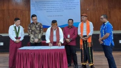 RUTENG,SELATANINDONESIA.COM – Demi mendukung program digitalisasi pemerintah pusat, PT Bank Pembangunan Daerah Nusa Tenggara Timur (Bank NTT) bersama Pemerintah Daerah Kabupaten Manggarai dan PT Intel Media Data menandatangani kesepakatan untuk implementasi Sistem Keuangan Desa (Siskeudes) Online. Penandatanganan ini bertujuan untuk memanfaatkan teknologi informasi serta aplikasi digital yang terintegrasi dengan CMS Bank NTT.