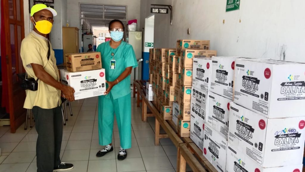 Bantuan berupa 100 dos makanan tambahan untuk Ibu Hamil dan 50 Dos makanan tambahan Balita yang diserahkan di Puskesmas Alor Kecil, Desa Oamate diterima langsung oleh Kepala Desa dan Ketua PPK Desa Oameta Kecamatan Alor Barat Laut Kabupaten Alor.