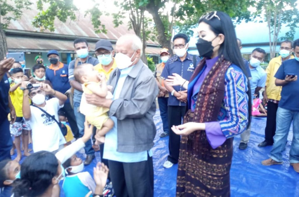 “Saya sudah membawa pakaian layak pakai untuk kebutuhan para pengungsi. Saya minta Bapak Kades mendata kebutuhan ibu hamil, ibu menyusui, bayi, balita sehingga kita akan mendatangkan makanan tambahan, susu, dan vitamin untuk mereka,” katanya.
