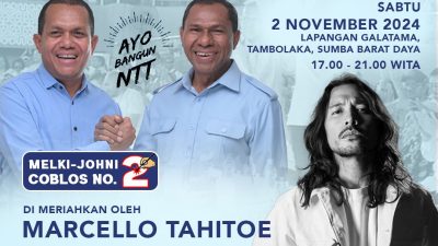 TAMBOLAKA,SELATANINDONESIA.COM – Pasangan calon gubernur dan wakil gubernur NTT nomor urut 2, Emanuel Melkiades Laka Lena dan Johni Asadoma yang dikenal dengan sandi politik MELKI-JOHNI menggelar Konser Hiburan Rakyat di Lapangan Galatama, Tambolaka, Sumba Barat Daya, Sabtu 2 November 2024 besok.