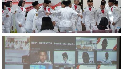 BANGKABELITUNG,SELATANINDONESIA.COM – Paskibraka 2022 se-Provinsi Kepulauan Bangka Belitung, Kepuluan Riau, Jambi, Lampung, dan DKI Jakarta mengikuti pembekalan Pembinaan Ideologi Pancasila (PIP) di Kota Pangkalpinang, Bangka Belitung Kamis (4/5/2023). Sebanyak 1.855 Paskibraka 2022 ini mengikuti pembekalan secara luring dan daring.