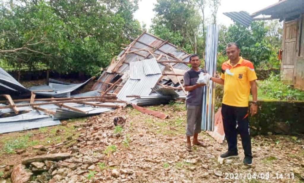 Pantauan media ini pada Jumat (9/4/2021) di Desa Oetutulu, Kecamatan Rote Barat Laut, Kabupaten Rote Ndao, tampak Bripka Andri Pah sedang membagikan bantuan bahan bangunan berupa seng dan paku untuk sejumlah warga setempat yang atapnya rumahnya rusak berat usai di hantam badai seroja sejak Minggu (4/4/2021) lalu.
