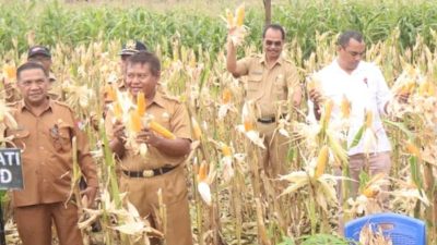 Bupati Sumba Barat Daya (SBD) dr. Kornelius Kodi Mete ketika bersama masyarakat melakukan panen jagung pada program TJPS Pola Kemitraan di Desa Hameli Ate, Kecamatan Kodi Utara, Kabupaten SBD, Senin (6/3/2023). Foto: BiroAdpimNTT