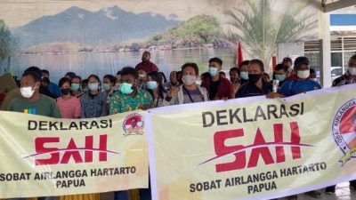 Sekitar 200-an masyarakat yang tergabung dalam Relawan Sobat Airlangga Hartarto (SAH) Kabupaten Jayapura, Provinsi Papua menggelar deklarasi dan menyatakan dukungan kepada Airlangga Hartarto untuk maju menjadi calon Presiden RI pada Pilpres 2024 mendatang.