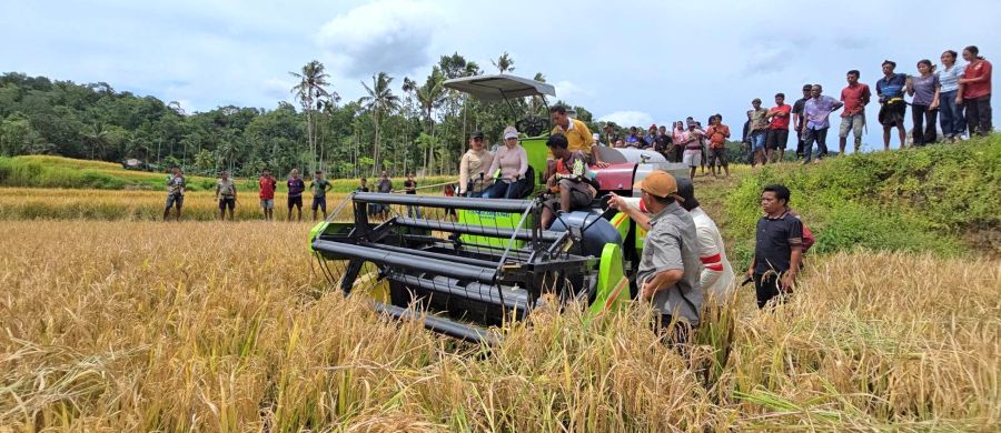 Untuk pertama kalinya, petani setempat memanen padi menggunakan Combine Harvester, alat bantuan pemerintah pusat yang mampu memotong, merontokkan, sekaligus membersihkan gabah dalam satu proses. Kehadiran teknologi ini bukan sekadar inovasi alat, melainkan simbol perubahan cara kerja dan peningkatan kapasitas sektor pertanian di daerah.