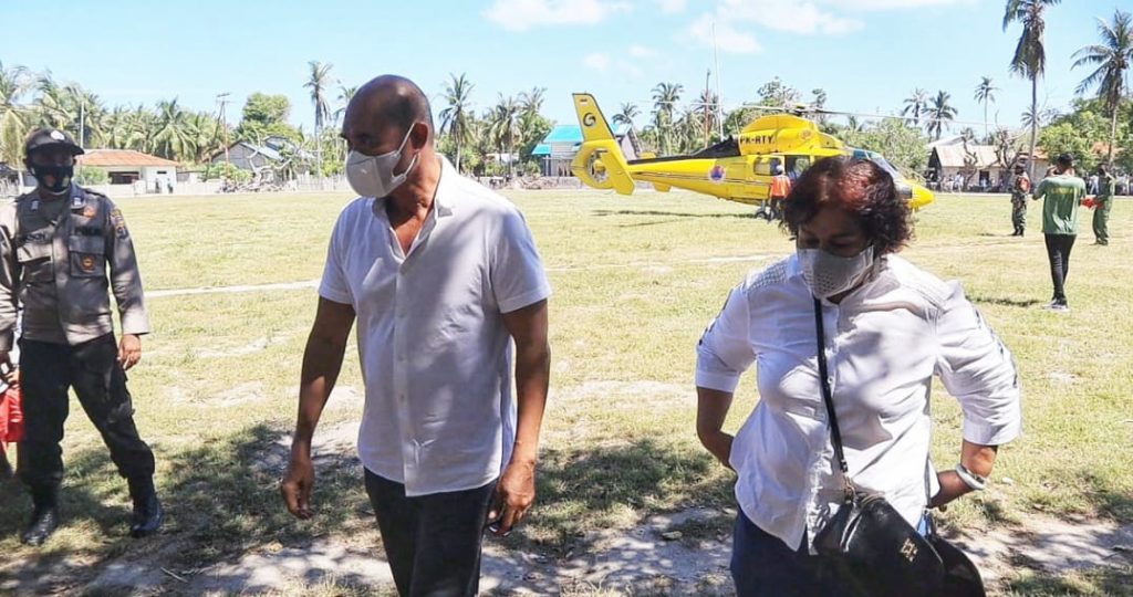 Gubernur NTT, Viktor Bungtilu Laiskodat dan Bupati Rote Ndao, Ny. Paulina haning-Bulu ketika tiba di Pulau Ndao, Kabupaten Rote Ndao, NTT, meninjau para korban bencana badai silikon tropis seroja, Jumat (17/4/2021)