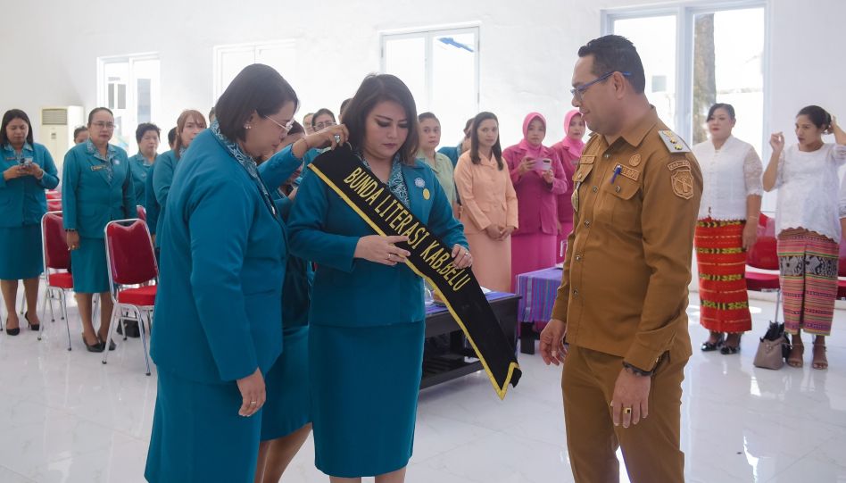 Wakil Bupati Belu, Vicente Hornai Gonsalves, mengukuhkan Ketua TP PKK Kabupaten Belu, Lidwina Viviawaty Lay Ng, sebagai Bunda Literasi Kabupaten Belu di Aula Gedung Wanita Betelalenok, Atambua.