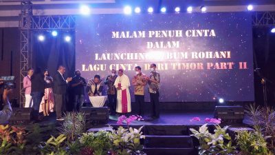 KUPANG,SELATANINDONESIA.COM-Bank NTT menggagas sebuah aksi spektauler untuk mendukung kelanjutan pembangunan Taman Doa Sta. Maria Imakulata, Paroki Santo Antonius Padua, Sasi, Kabupaten Timor Tengah Utara (TTU). Aksi itu dilakukan dengan cara peluncuran album rohani ‘Lagu Cinta Dari Timor Part 2’, dan malam penggalangan dana yang digelar Senin (10/1/2022) malam di Palacio Ballroom Aston Hotel Kupang.