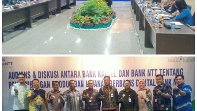KUPANG,SELATANINDONESIA.COM – Manajemen Bank Kalsel dari Kalimantan Selatan melakukan audiens dan diskusi dengan Bank NTT. Diskusi yang berlangsung di Lantai 5 Kantor Pusat Bank NTT itu untuk mempelajari pengembangan produk dan layanan berbasis digital Bank NTT.