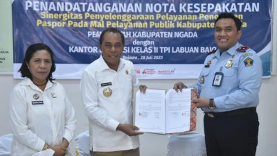 Nota kesepakatan yang ditandatangani langsung Bupati Ngada, Andreas Paru dan Kepala Kanim Labuan Bajo, Jaya Mahendra terkait dengan sinergitas penyelenggaraan pelayanan penerbitan paspor pada Mal Pelayanan Publik (MPP) Kabupaten Ngada.