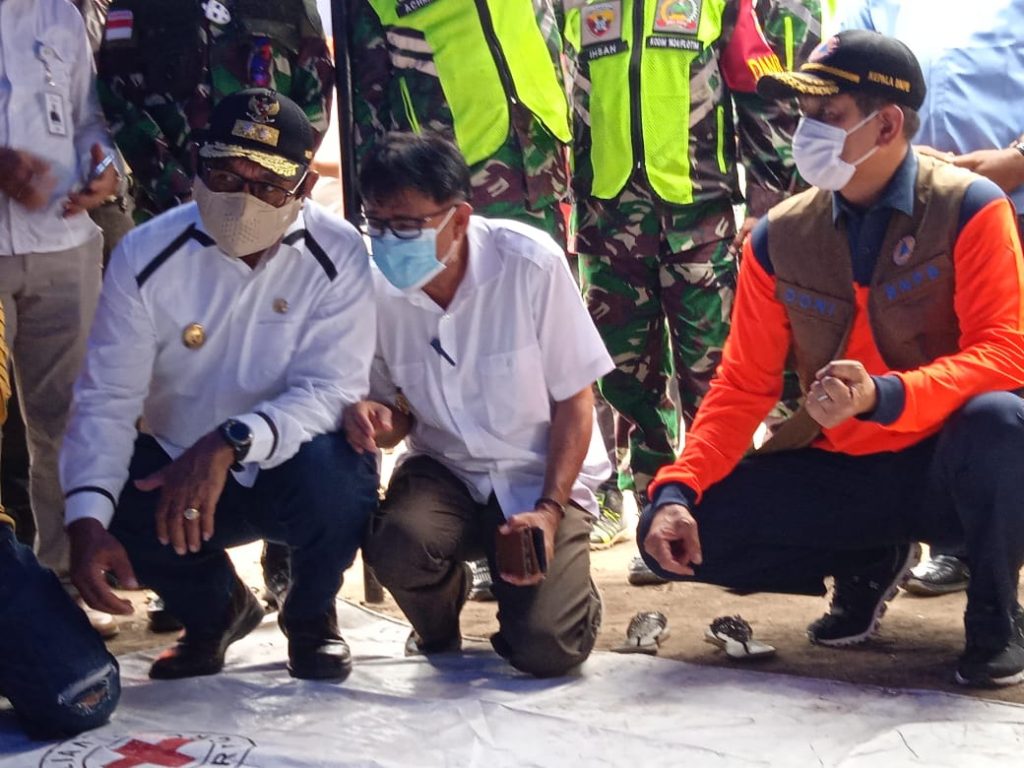 Kepala BNPB dan Wagub NTT bersama rombongan melihat langsung korban bencana Erupsi Gunung Api Ile Lewotolok di Halaman Kantor Bupati lama.