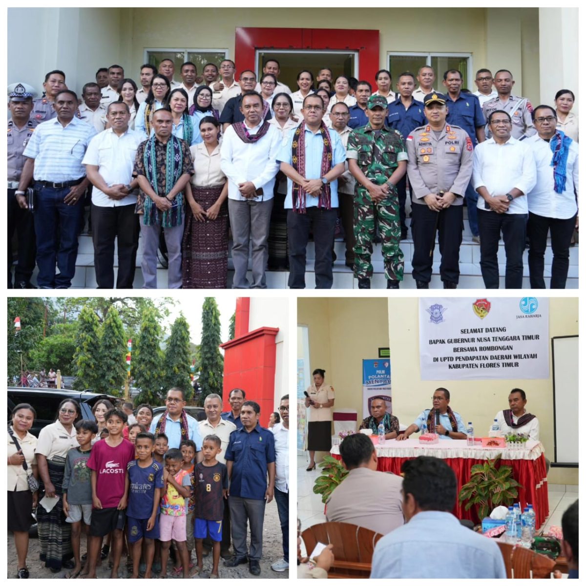 Kunjungan Gubernur juga menjadi ajang konsolidasi. Hadir lengkap jajaran Pemerintah Kabupaten Flores Timur, Bupati Antonius Doni Dihen, Wakil Bupati Ignas Boli Uran, Sekda Petrus Pedo Maran, Kapolres AKBP Adhitya Oktorio Putra, pimpinan DPRD Flotim, hingga tokoh politik lokal. Dari provinsi, ikut serta Kepala BPAD NTT Alexon Lumba, Asisten Perekonomian Flouri Rita Wuisan, Kepala Dinas Kelautan dan Perikanan Sulastri Rasyid, serta Kepala Dinas PUPR Benyamin Nahak.
