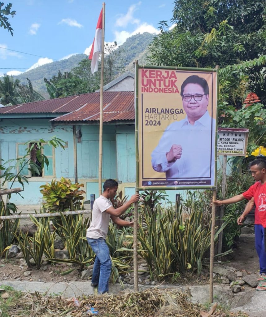 Baliho Ketua Umum DPP Golkar, Airlangga Hartarti di Kelurahan Kota Ndora, Kecamatan Borong, Kabupaten Manggarai Timur, NTT