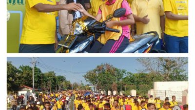 KUPANG,SELATANINDONESIA.COM – Wajahnya sumringah. Sambil berlari dengan mengacungkan tangan yang memegang kepingan kupon, ia keluar dari kerumunan masa Jalan Sehat di depan Gedung Golkar Provinsi NTT. Ia menuju ke panggung kehormatan Golkar NTT untuk bertemu dengan Ketua DPD I Golkar NTT, Emanuel Melkiades Laka Lena yang baru saja mengumumkan nomor kupon sebagai pemenang hadiah utama.