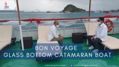 LABUANBAJO,SELATANINDONESIA.COM – Menteri Perhubungan RI, Ir. Budi Karya Sumadi didampingi Gubernur NTT, Viktor Bungtilu Laiskodat meresmikan kapal Glass Bottom Catamaran di Waterfront City Dermaga Putih KSOP Kelas III, Labuan Bajo, Kabupaten Manggarai Barat, Jumat (18/3/2022).