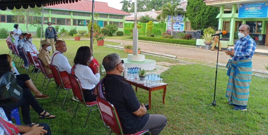 Kadis Pendidikan dan Kebudayaan Provinsi NTT, Linus Lusi ketika berbicara dalam kunjungan kerja bersama Gubernur NTT, Viktor Bungtilu Laiskodat di SMK Negeri I Soe, Kabupaten TTS, Selasa (23/3/2021) Foto: SelatanIndonesia.com/Laurens Leba Tukan