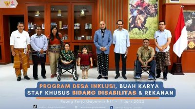 “Hari ini saya boleh beraudiens dengan salah seorang Staf Khusus saya di bidang Disabilitas, Dina Novita Noach, dan para rekannya. Mereka datang menyampaikan inovasi yang telah mereka buat, yakni Program Desa Inklusi,” sebut Gubernur Laiskodat di Kupang, Selasa (7/6/2022).
