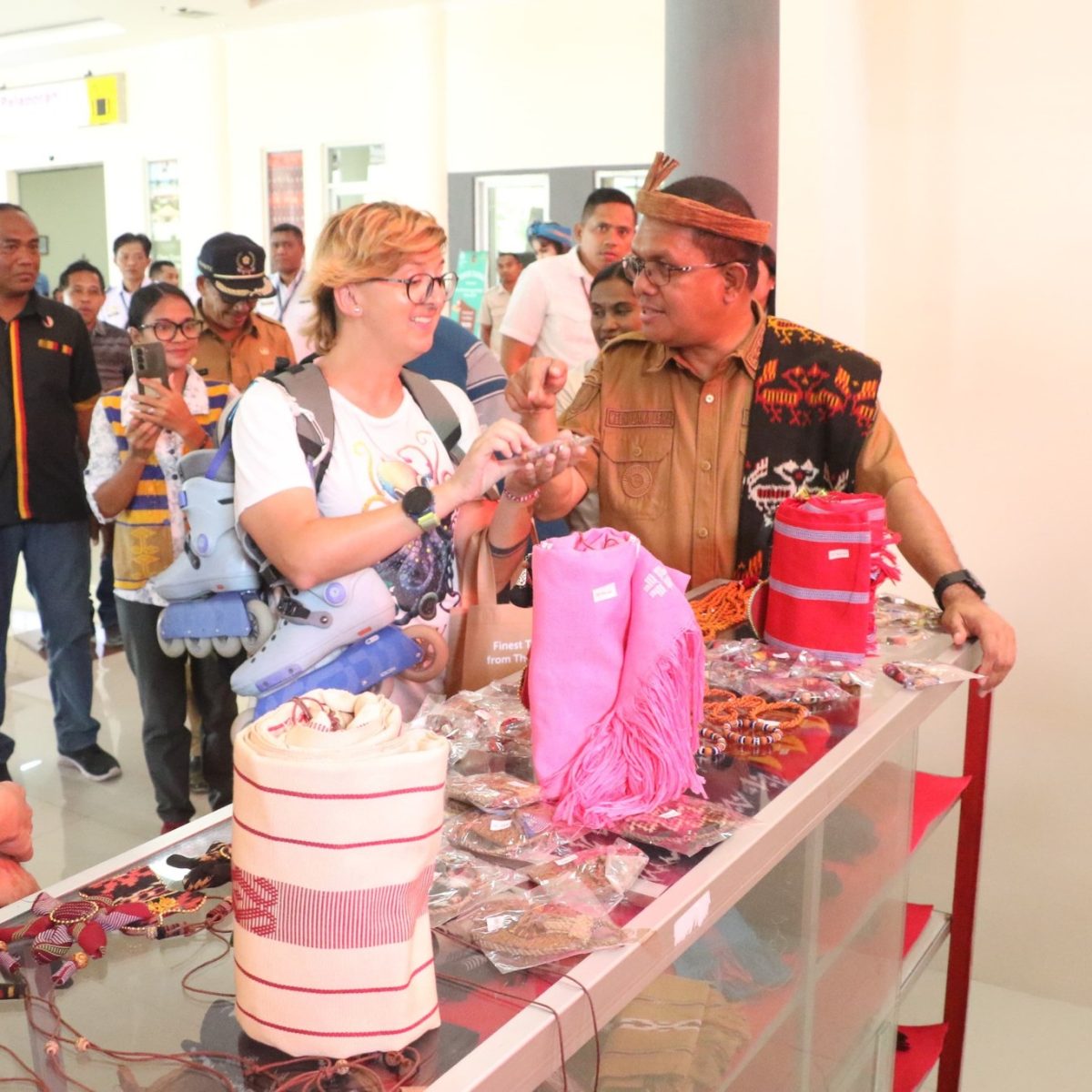 Dalam kesempatan itu, Gubernur Melki turut membeli sejumlah produk dan membagikannya sebagai oleh-oleh kepada wisatawan mancanegara. Gestur sederhana yang sekaligus menjadi promosi langsung bahwa karya tangan masyarakat Sumba layak mengisi ruang perjalanan dunia.*/ Fara Therik/Laurens Leba Tukan