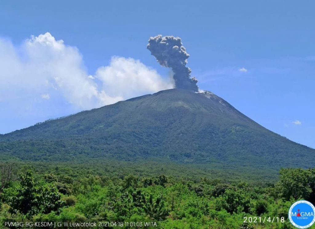 “Pada tanggal 18 April 2021 pukul 11:01 Wita terjadi erupsi dengan tinggi kolom abu teramati ± 1.500 m di atas puncak (± 2.923 m di atas permukaan laut). Kolom abu teramati berwarna kelabu hingga hitam dengan intensitas tebal condong ke arah selatan dan barat daya. Erupsi ini terekam di seismogram dengan amplitudo maksimum 8 mm dan durasi ± 52 detik,” sebut Pengamat Gunung Ile Lewotolok, Stanislaus Ara Kian, Minggu (18/4/2021) kepada SelatanIndonesia.com.