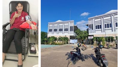 Kiri: Salah satu civitas akademika Kampus PLC ketika melakukan donor darah dalam rangka HUT ke 5 Kampus PLC. Kanan: Gedung Kampus PLC Labuan Bajo, Kabupaten Manggarai Barat. Foto: Dok:Fitri