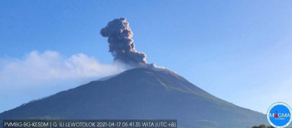 Kolom abu teramati berwarna kelabu dengan intensitas tebal condong ke arah Barat. Erupsi ini terekam di seismogram dengan amplitudo maksimum 27 mm dan durasi ± 40 detik. Dan terjadi letusan disertai dentuman sedang. Saat ini Gunung Ile Lewotolok berada pada Status Level III (Siaga) dan direkoemnadasikan agar masyarakat di sekitar Gunung Ile Lewotolok maupun pengunjung/pendaki/wisatawan diminta agar tidak melakukan aktivitas di dalam radius 3 km dari puncak/kawah Gunung Ile Lewotolok,” sebut Stanislaus Ara Kian, kepada SelatanIndonesia.com, Sabtu (17/4/2021).