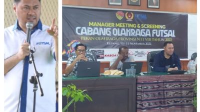 KUPANG,SELATANINDONESIA.COM – Jelang pembukaan Pekan Olahraga Provinsi (Porprov) NTT VIII pada Sabtu (12/11/2022), Asosiasi Futsal Provinsi (AFP) NTT, menggelar manager meeting dan screening bagi peserta cabang olahraga (cabor) futsal. Ketua AFP NTT, Jimmy W.B, Sianto mengaku bangga dengan 13 Tim Futsal dari Kabupaten/Kota se NTT.