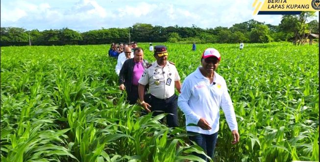 Didampingi Kepala Kantor Wilayah Ditjenpas NTT Ketut Akbar Herry Achjar dan Kalapas Kelas IIA Kupang Antonius Hubertus Jawa Gili, Wakil Gubernur menyusuri area kebun yang ditanami kacang panjang, terong, tomat, cabai, edamame, pepaya, hingga jagung. Seluruh komoditas tersebut dikelola oleh warga binaan yang mengikuti program asimilasi, sebagai bagian dari pembinaan kemandirian di bidang pertanian.