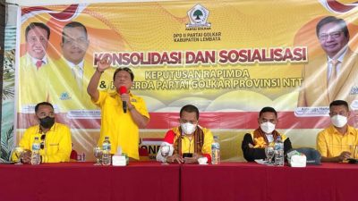 Ketua DDP Golkar NTT, Emanuel Melkiades Laka Lena dalam rangkaian kosolidasi bersama keluarga besar Partai Golkar Lembata di Lewoleba, Sabtu (9/4/2022). Pertemuan itu sekalian mensosialisasi hasil Rakerda/Rapimda serta Temu Akbar Perempuan dan Milenial Golkar NTT di Kupang, 4-6 Februaru 2022 silam.