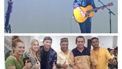 Atas: Eki Cahyadi ketika tampil memukau dalam acara Malam Kebudayaan dengan tema “Saatnya yang Muda Berbuat” yang digelar di Aula Kampus Universitas Muhammadyah Kupang, Kamis (27/10/2022). Foto: SelatanIndonesia.com/Laurens Leba Tukan. Bawah: Eki Cahyadi bersama Isteri dan Wakil Ketua Komisi IX DPR RI Emanuel Melkiades Laka Lena serta awak media di Aula Kampus Universitas Muhammadyah Kupang, Kamis (27/10/2022). Foto: Expontt.com/Gorby Rumung