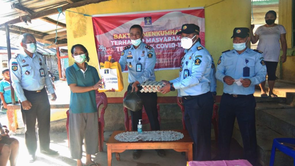 Tim Kumham Peduli, Kumham Berbagi Rutan Ruteng yang dipimpin langsung oleh Kepala Rutan Ruteng, Ardian Alamsyah langsung membagikan bantuan berupa sembako dan masker kepada 20 Keluarga yang telah didata sebelumnya.