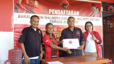 Politisi PDI Perjuangan NTT ketika mendaftar sebagai bakal calon Wakil Wali Kota Kupang di DPC PDI Perjuangan Kota Kupang, Senin (29/4/2024). Foto: Bonlek