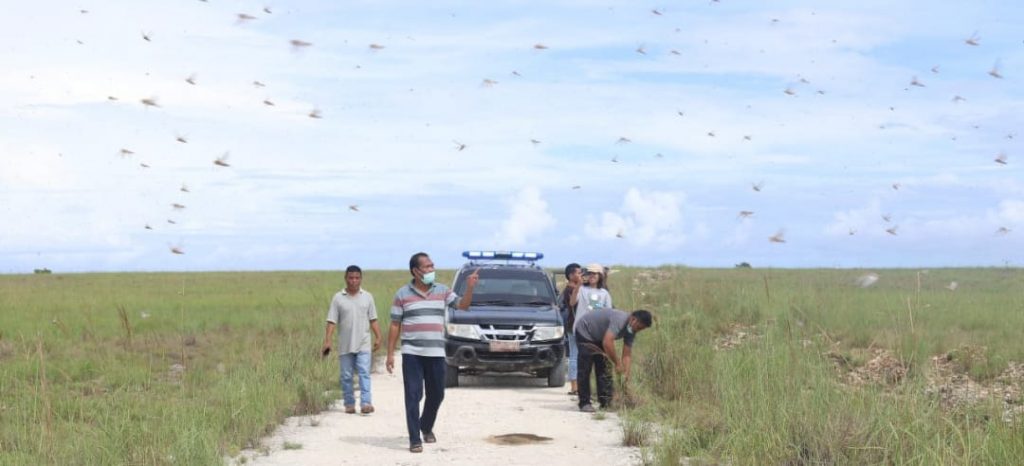 Wakil Bupati Sumba Tengah, Daniel Landa ketika memantau serangan hama belalang di wilayah Pantura, Kabupaten Sumba Tengah, pekan lalu. Foto: Try