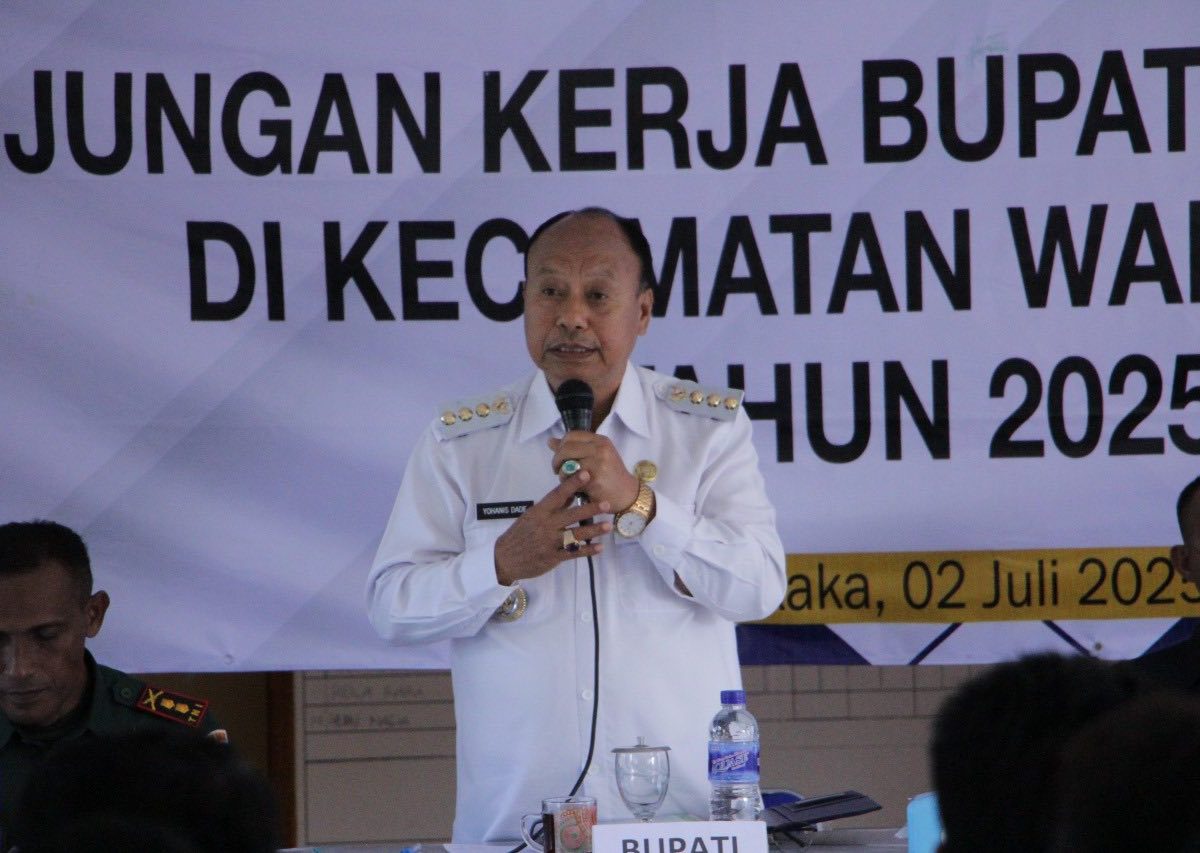 Di hadapan tokoh masyarakat, kepala desa, dan perwakilan sekolah, Bupati Yohanis berbicara lugas dan bernada tegas. Ia meminta agar tak ada aparat yang menghambat masuknya investasi. “Kalau ada investor masuk, jangan dipersulit. Infrastruktur harus tertata: jalan, air, pendidikan, kesehatan. Semua harus bergerak bersama,” katanya.