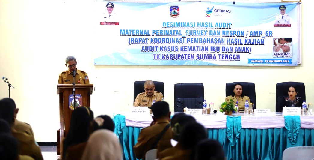 WAIBAKUL,SELATANINDONESIA.COM — Sekretaris Daerah Kabupaten Sumba Tengah, Bernardus B. Gela, membuka kegiatan Diseminasi Hasil Audit Maternal Perinatal Survey dan Respon (AMP-SR) yang berlangsung di Aula Bappelitbangda Sumba Tengah, Selasa (18/11/2025). Forum ini menjadi ruang evaluasi menyeluruh terhadap penanganan kasus kematian ibu dan bayi di daerah tersebut.