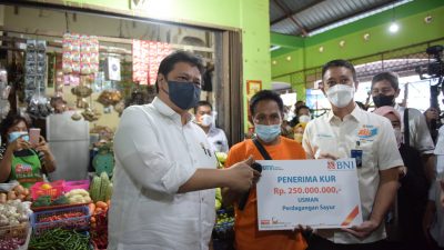 Selanjutnya, Menko Airlangga juga menyaksikan penyerahan bantuan Kredit Usaha Rakyat (KUR) secara simbolis dari BNI kepada tiga perwakilan pedagang pasar. KUR ini diharapkan dapat membantu permodalan usaha mereka agar tetap bisa bertahan meskipun di tengah pandemi Covid-19.