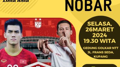 KUPANG,SELATANINDONESIA.COM- Dewan Pimpinan Daerah (DPD) 1 Golkar Provinsi NTT akan menggelar acara nonton bareng (Nobar) untuk memeriahkan leg kedua kualifikasi Piala Dunia Zona Asia antara Vietnam dan Timnas Indonesia.