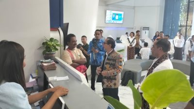 Usai melakukan pertemuan tertutup dengan jajaran Komisaris dan Direksi, Ody Kalake dan Kosmas Lana serta rombongan lainnya sempat berdialog dengan para nasabah dan petugas Bank NTT yang sedang bertugas.