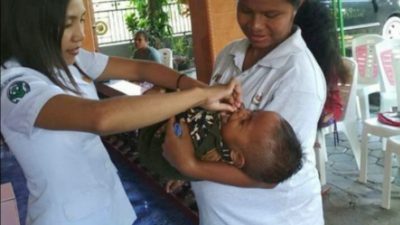 Pemberian vitamin untuk anak-anak di salah satu Puskesmas di Kota Kupang.