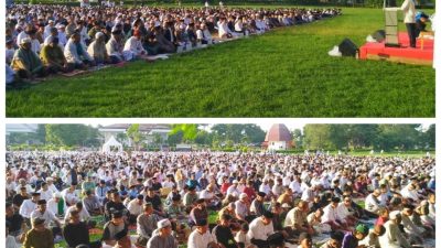 KUPANG,SELATANINDONESIA.COM – Sebanyak 2000-an umat muslim di Kota Kupang menggelar salad Id Idul Fitri 1 Syawal 1445 H/2024 M, Rabu (10/4/2024) di Alun-alun Rumah Jabatan Gubernur NTT. Rupanya, penyelenggaraan salad Id di Alun-alun Rumah Jabatan Gubernur NTT ini merupakan yang pertama kalinya sejak Provinsi Nusa Tenggara Timur (NTT) berdiri.