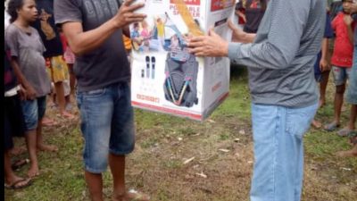 TAMBOLAKA,SELATANINDONESIA.COM – Ketua Fraksi Partai Golkar DPRD Provinsi NTT, Hugo Rehi Kalembu berbagi kasih bersama umat Katolik di Kabupaten Sumba Barat Daya (SBD). Politisi senior Partai Golkar yang sudah delapan periode menjadi anggota DPRD itu menyerahkan bantuan berupa satu unit sound system untuk Kapela Bunda Maria Berbelas Kasih.
