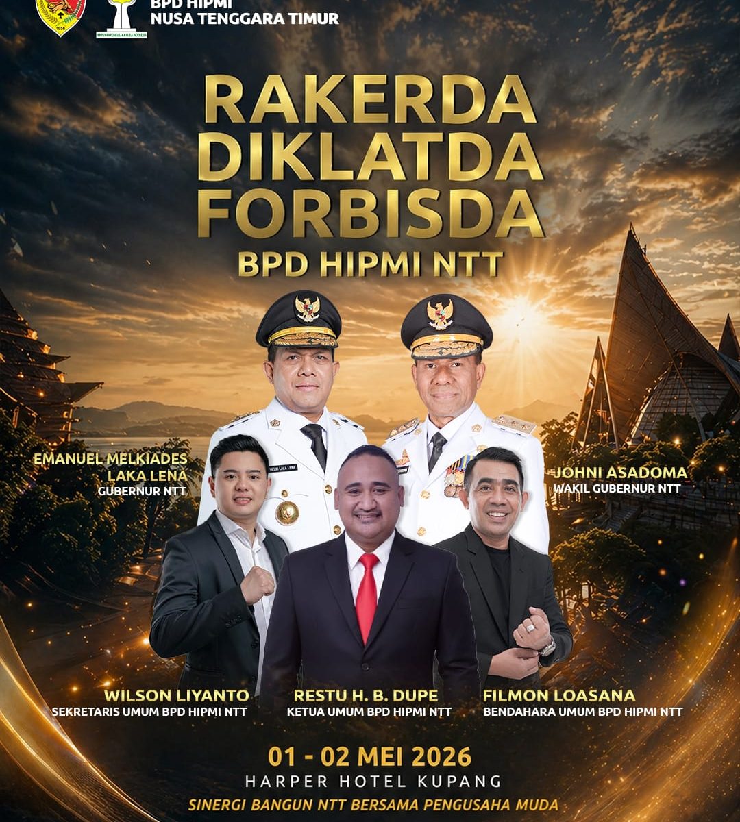 KUPANG,SELATANINDONESIA.COM โ Badan Pengurus Daerah HIPMI NTT mulai menggelar rangkaian kegiatan strategis yang menyasar penguatan kapasitas dan jejaring pengusaha muda di Nusa Tenggara Timur. Agenda yang meliputi Pendidikan dan Pelatihan Daerah (Diklatda), Rapat Kerja Daerah (Rakerda), dan Forum Bisnis Daerah (Forbisda) itu dijadwalkan berlangsung pada 1โ2 Mei 2026 di Kupang.
