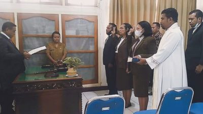 Keempat pejabat dilantik adalah Muhajir Salem, S.Sos, Irene Anthia Lambertus, A.Md, Agnes Pai Kromen A.Md, dan Hendrikus Emanuel Tupen, S.Mn. Hendrikus Emanuel Tupen, S.Mn, sendiri tidak bisa hadir karena masih sakit.