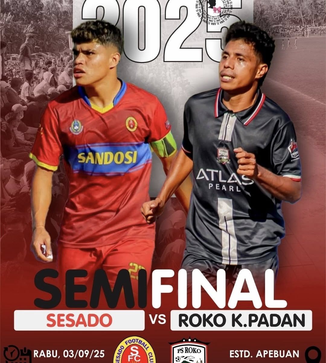 ADONARA,SELATANINDONESIA.COM – Api kompetisi Apebuan Cup 2025 semakin panas. Rabu sore ini (3/9/2025, lapangan hijau di bawah kaki Ile Boleng itu akan jadi saksi duel sarat gengsi: PS Roko Kolipada dari Lembata menantang Sesado Sandosi, wakil terakhir Adonara. Pertandingan semifinal kedua ini diprediksi bukan sekadar adu strategi, melainkan pertaruhan harga diri dua tanah yang bertetangga dekat di Laut Flores.