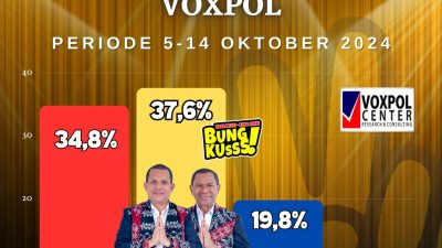 Hasil survei Voxpol Center yang mem9otret pasangan MELKI-JOHNI unggul dari kandidat lain.