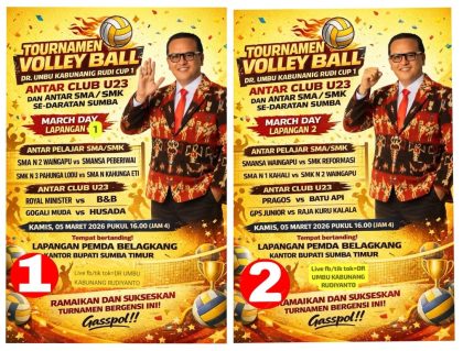 Berita Hari Ini NTT Golkar Olahraga Pendidikan Berita Hari Ini NTT Golkar Olahraga Pendidikan Dari Sumba untuk Voli: Umbu Rudi Kabunang Cup I Siap Digelar, Ruang Tumbuh Atlet Muda Dibuka Januari 7, 2026 โข KUPANG,SELATANINDONESIA.COM โ Semangat membangun prestasi voli di daratan Sumba menemukan momentumnya. Turnamen Dr. Umbu Rudi...
