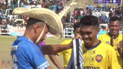 LEWOLEBA,SELATANINDONESIA.COM – Sebuah aksi penuh persadaraan terjadi sebelum laga penuh gengsi di semi final El Tari Memorial Cup ke 31 antara Perserond Rote Ndao berhadapan dengan tuan rumah Persebta Lembata, Minggu (25/9/2022) di Stadion Gelora 99 Lembata. Betapa tidak, sebuah topi Tii Langga dan sarung Lamalera menjadi simbol persaudaraan antara kedua tim.
