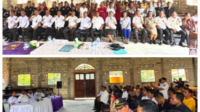 Bupati Rote Ndao, Paulus Henuk didamping Wakil Bupati Apremoi Dethan, Sekda Jonas M. Selly, para asisten dan pimpinan perangkat daerah, serta unsur Forkopimca melakukan Sosialisasi Percepatan Penyiapan Lahan Pembangunan Kawasan Sentra Industri Garam Nasional di Desa Daima, Kecamatan Landu Leko, Kabupaten Rote Ndao, Rabu (18/06/2025).