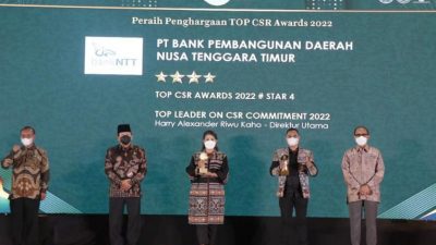 “Sederetan penghargaan ini diberikan setelah PT. BPD NTT melalui proses penilaian termasuk wawancara oleh dewan juri sehingga berdasarkan sidang pleno, diterbitkanlah keputusan PT. BPD NTT sebagai pemenang TOP CSR awards 2022 star 4 dan bapak Direktur Utama Harry Alexander Riwu Kaho sebagai pemenang Top Leader on CSR comitment 2022,”demikian release dari penyelenggara.